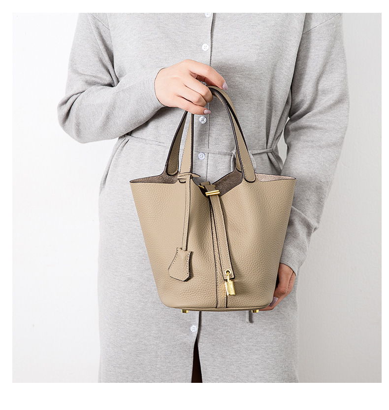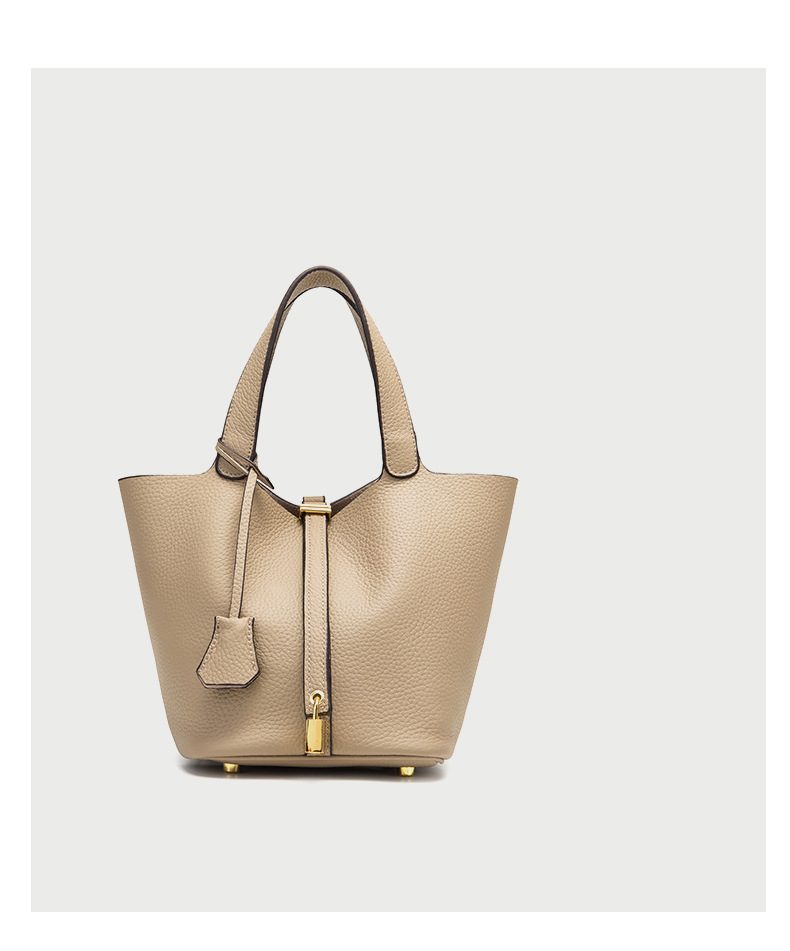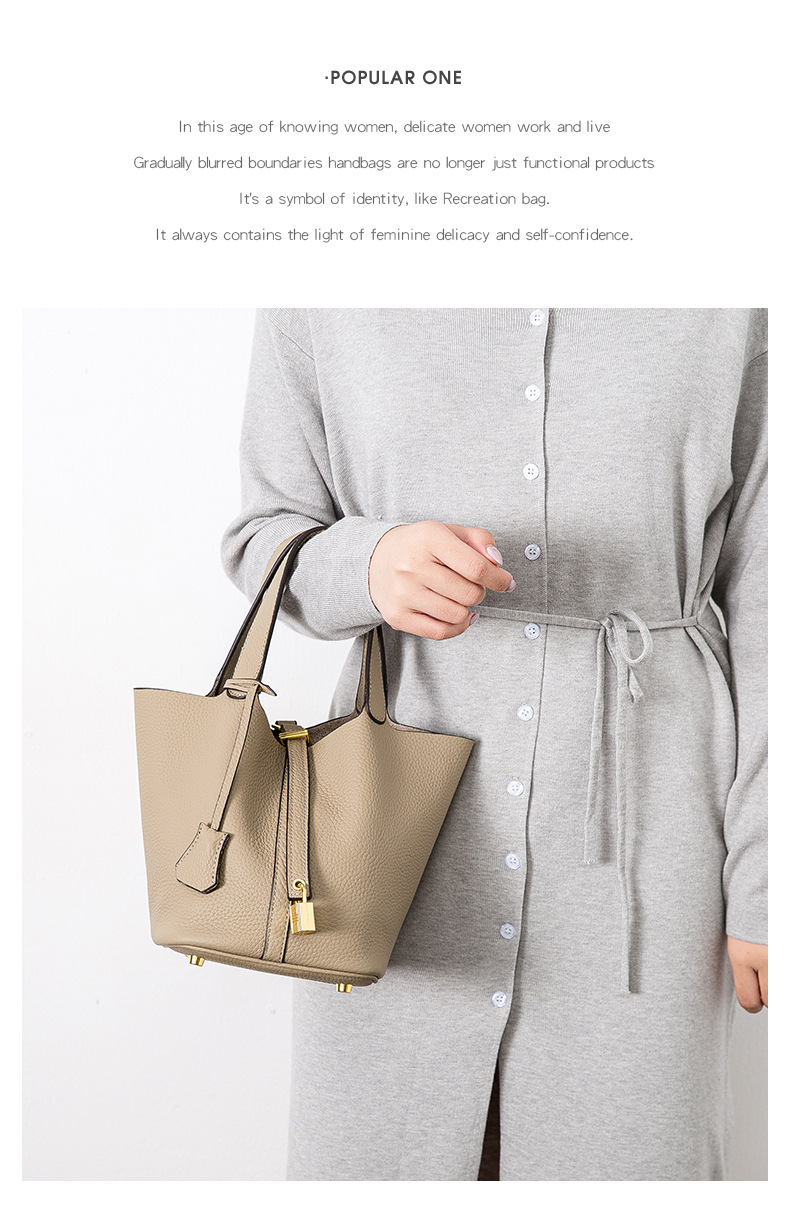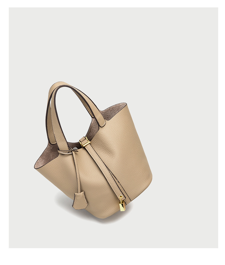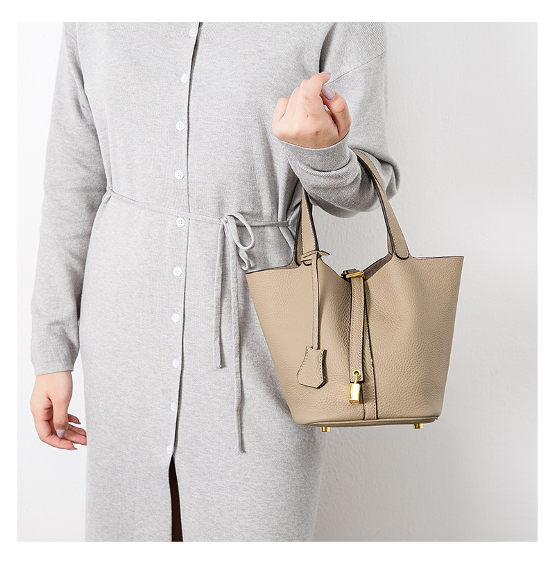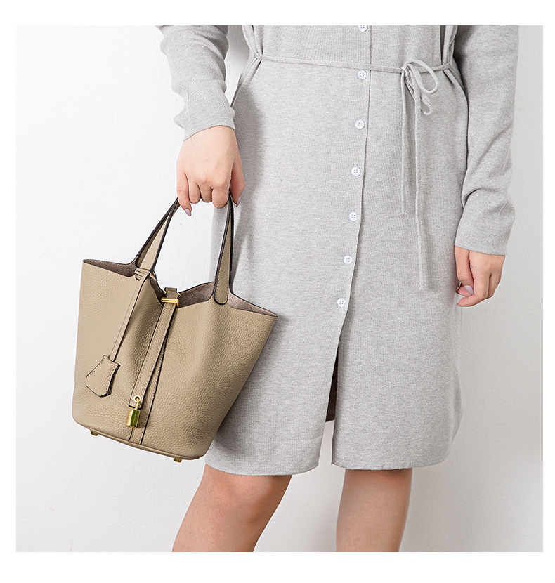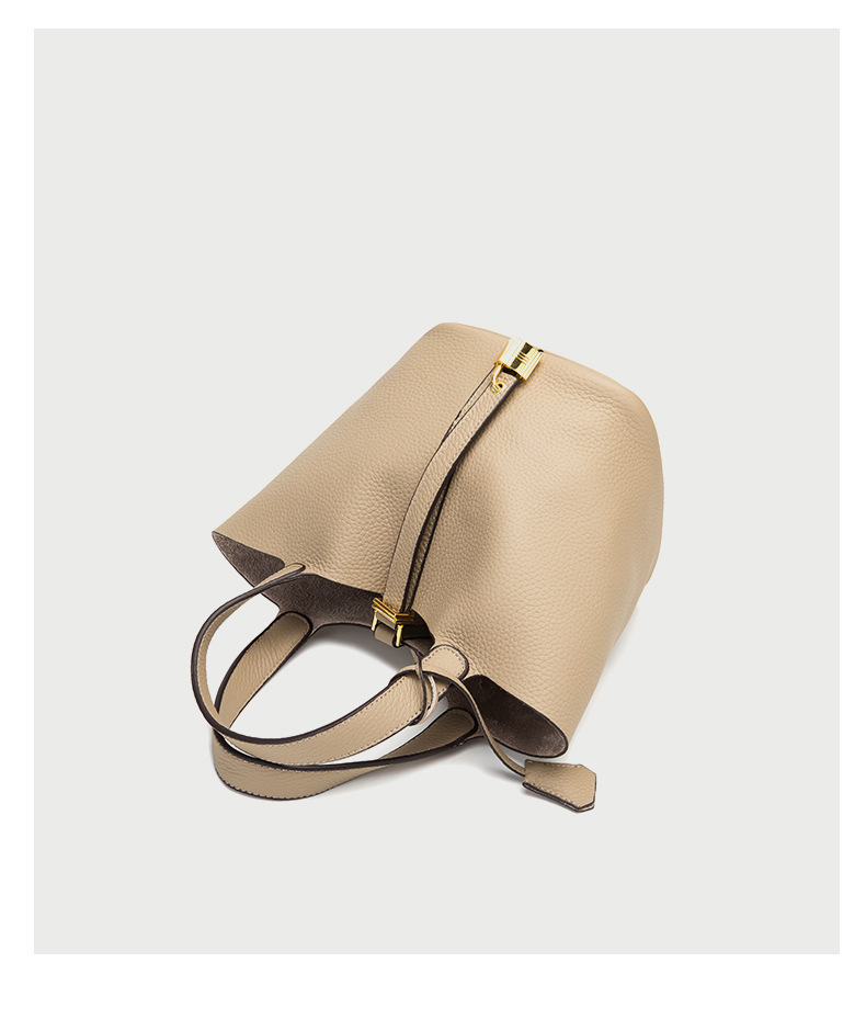 Classic Design: Features a timeless bucket bag shape with a stylish lock closure.