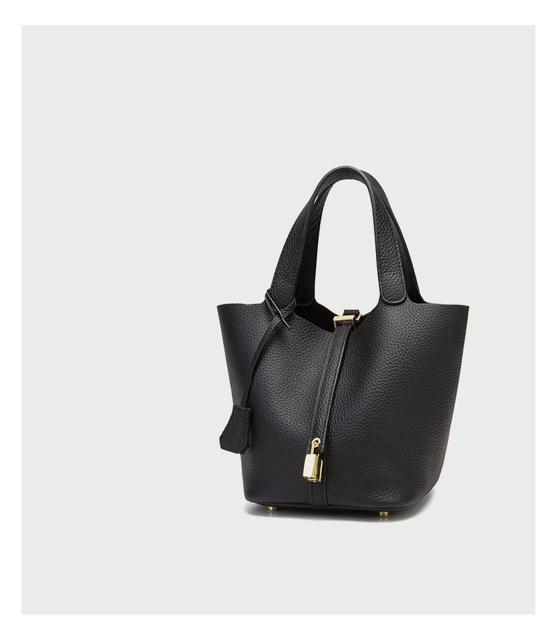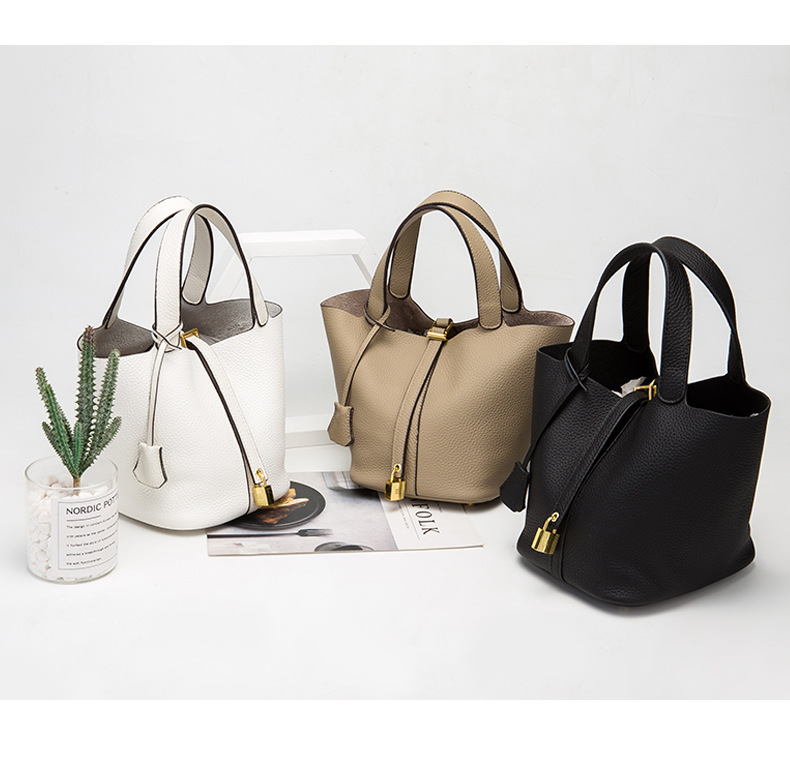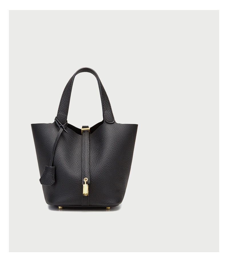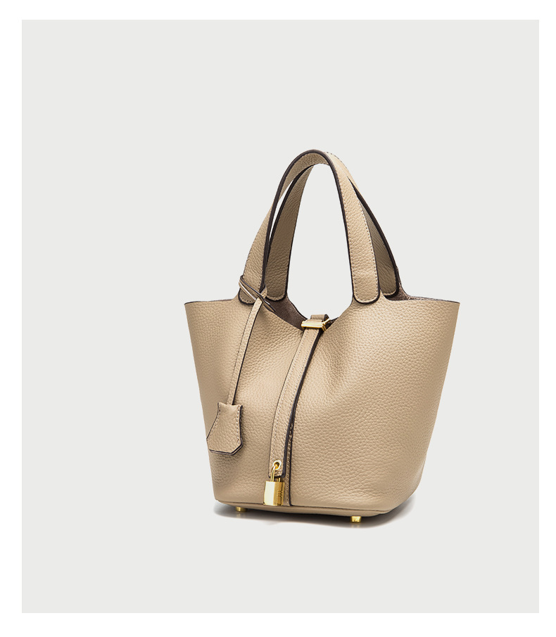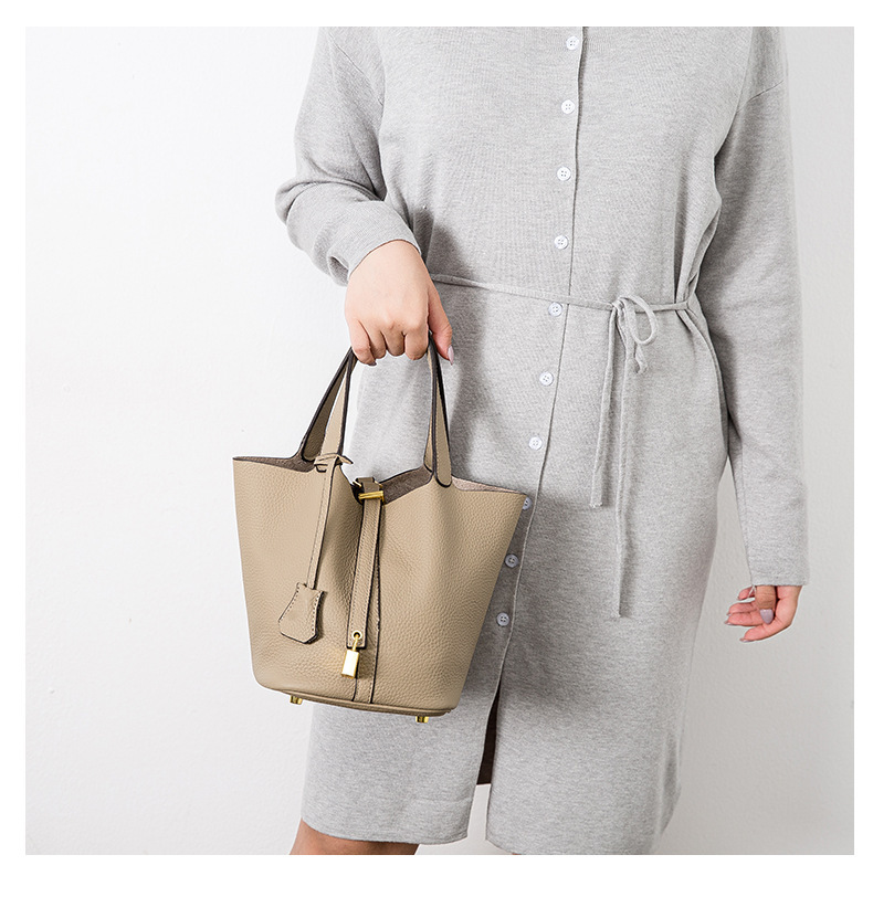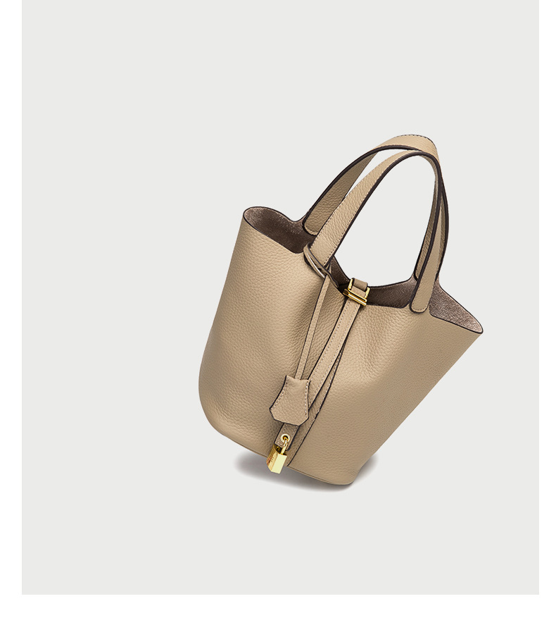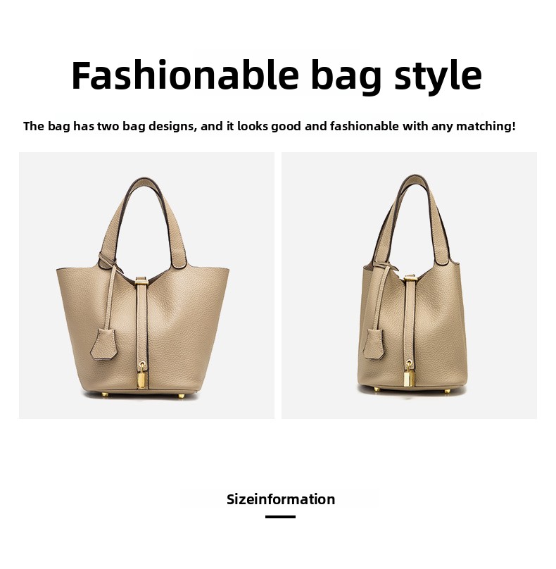 Classic Design: Features a timeless bucket bag shape with a stylish lock closure.