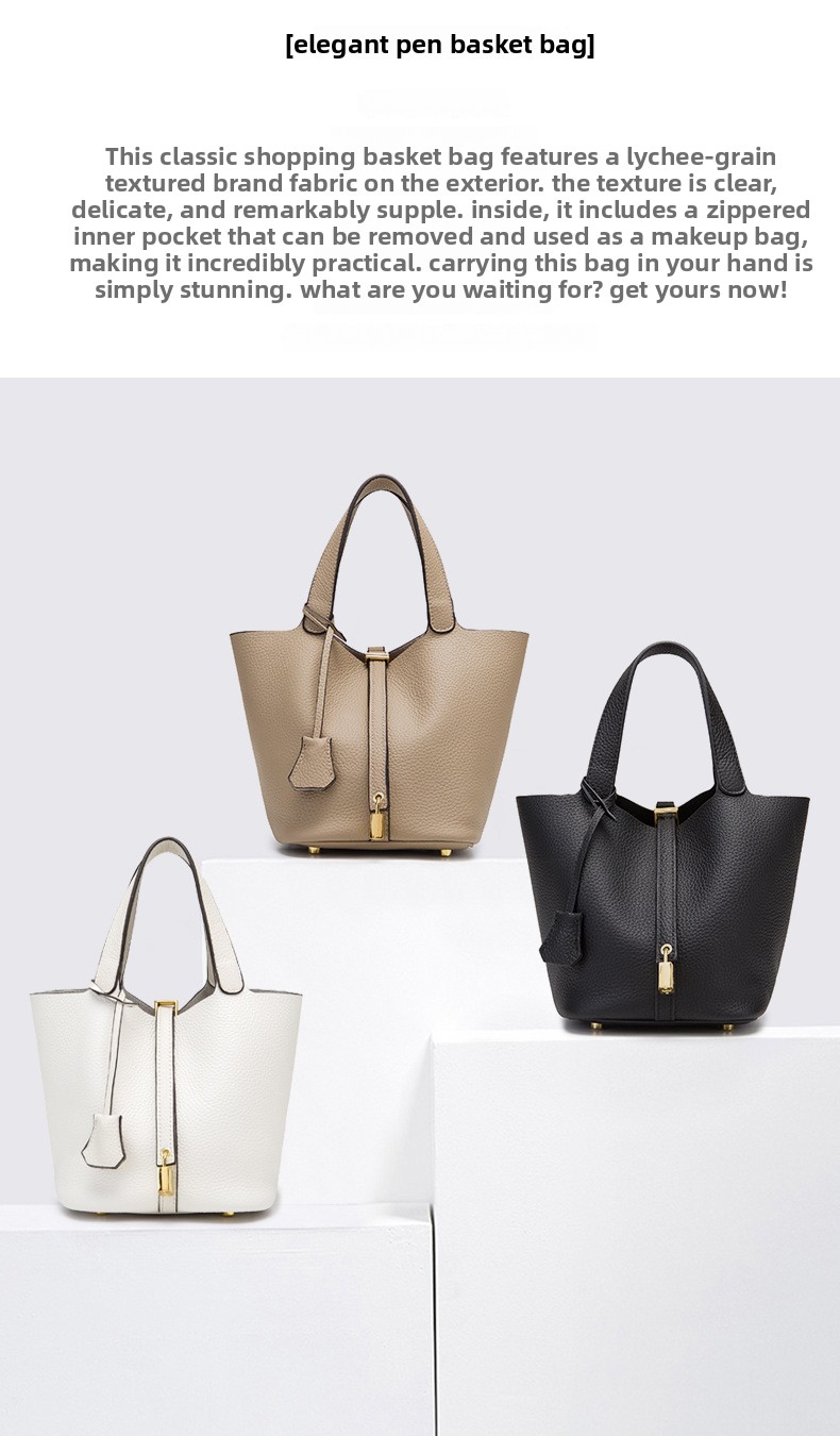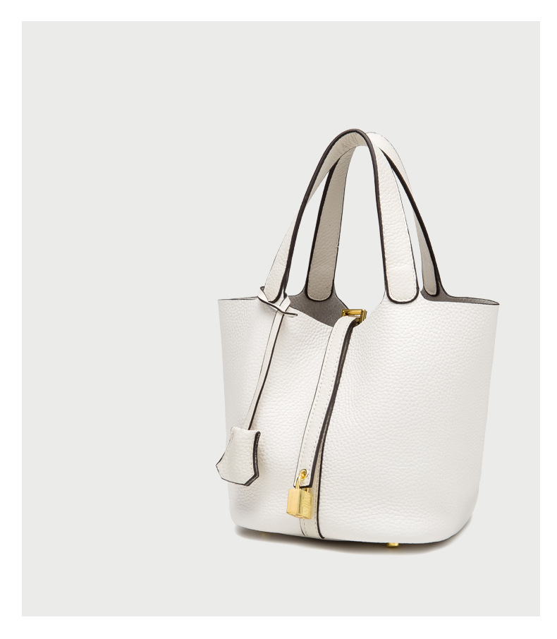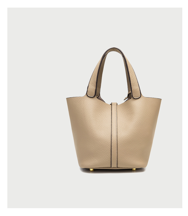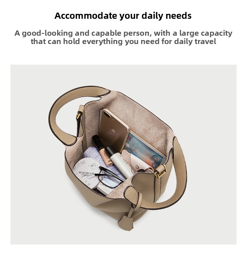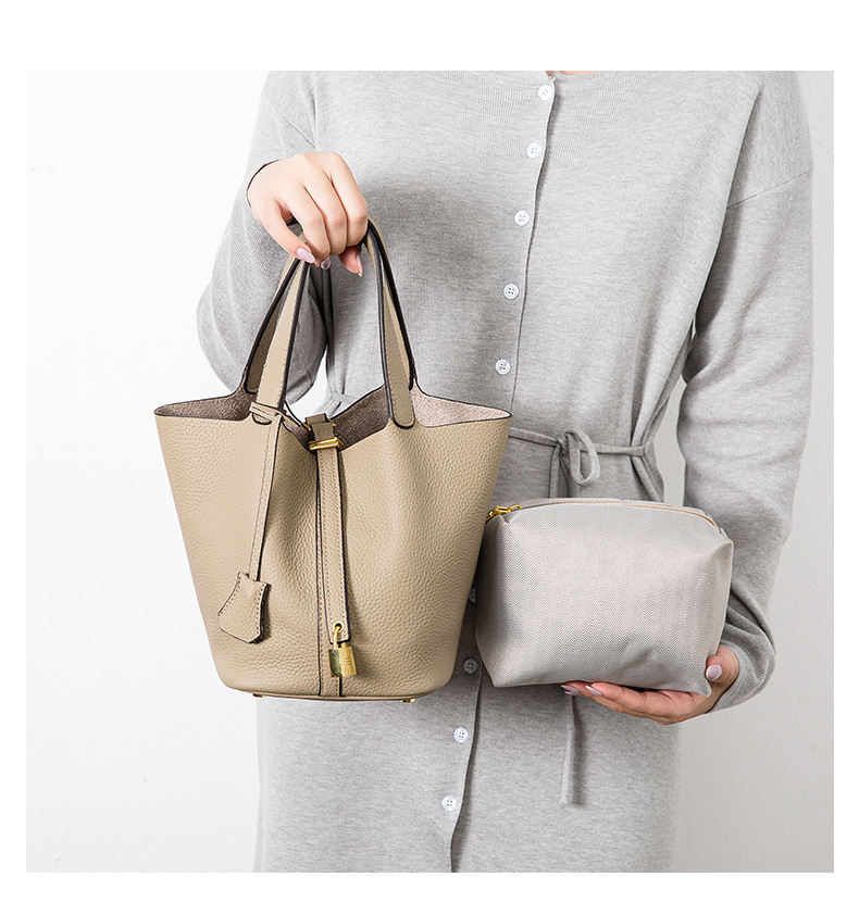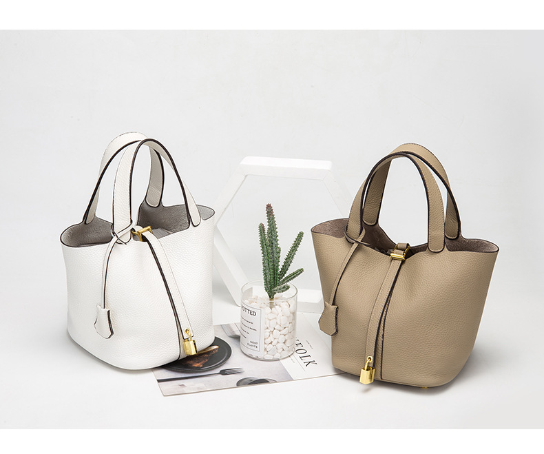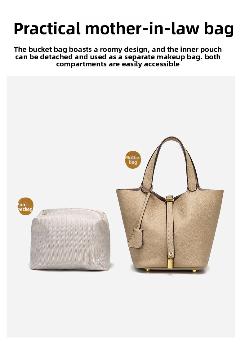 Classic Design: Features a timeless bucket bag shape with a stylish lock closure.
