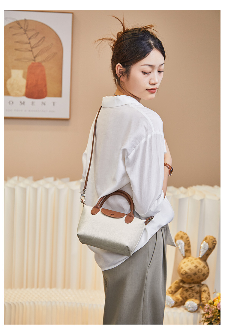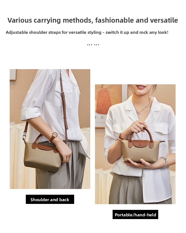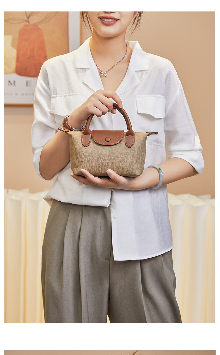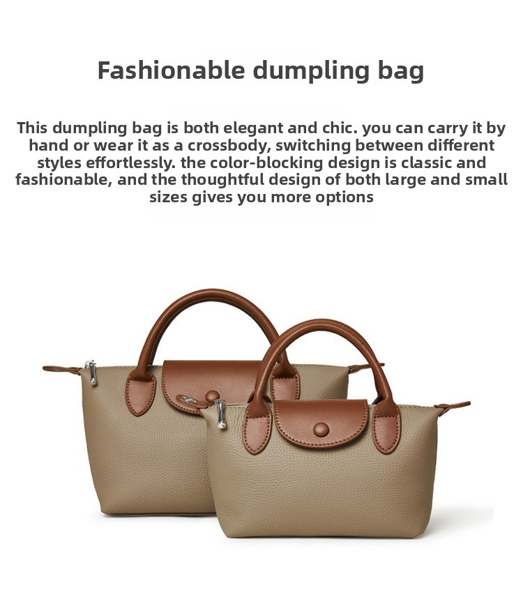 Trendy Design: Dumpling bag style with contrast color details for a fashionable appearance.