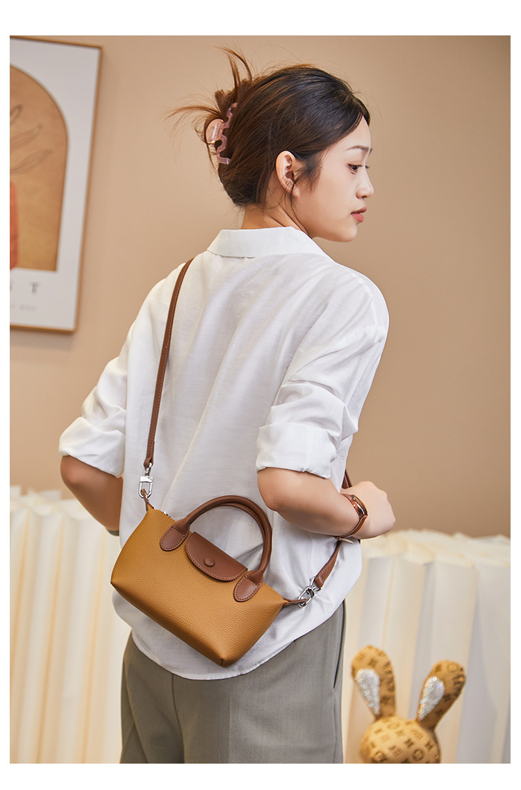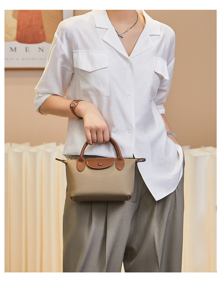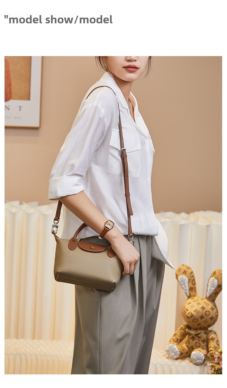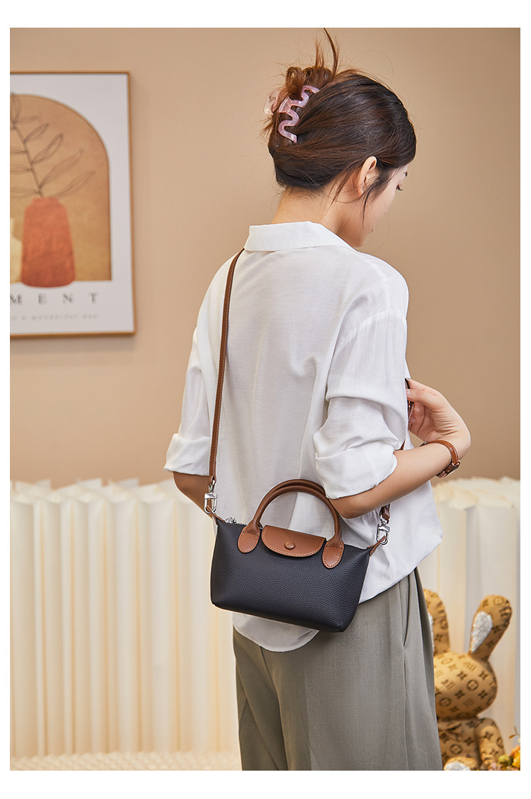 Trendy Design: Dumpling bag style with contrast color details for a fashionable appearance.