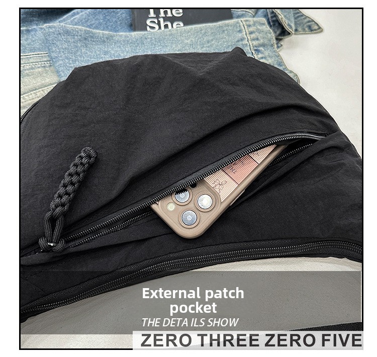 Functional Interior: Features a zippered compartment and internal patch pocket for organized storage.