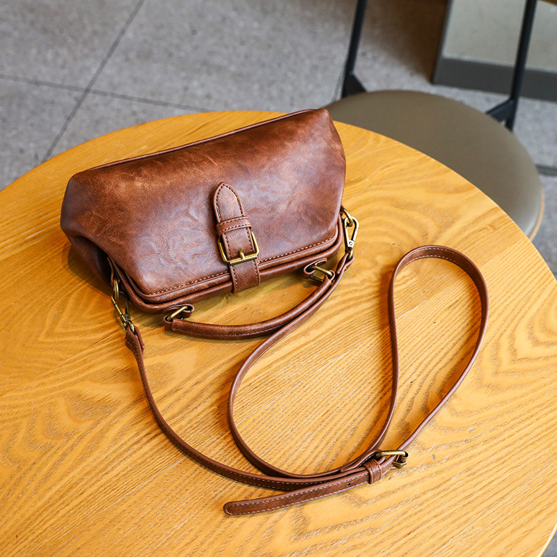 Stylish Details: Features trendy elements like rivets and a sleek oval shape.